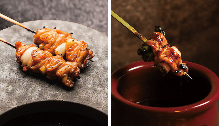 国産鶏を部位ごとに厳選して串打ちした焼鳥は、ひと口目から肉汁が広がる自慢の逸品!テーブル席のみ注文可能な名物の京鴨しゃぶは、極薄に切った鴨肉を黄金出汁にサッとくぐらせ、柔らかく旨み豊かに味わえます。