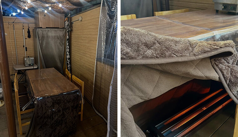 テラス席は冬仕様になると、ふわふわ毛布とヒーターが設置され、ビニールに囲まれているので、ワンコ連れでも快適に過ごせます。