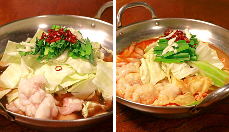 人気メニューはもつ鍋。醤油ベースと辛味噌ベースから選ぶことができておすすめです。