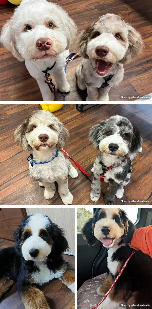 オールド・イングリッシュ・シープドッグとプードル(スタンダードまたはミニチュア)を掛け合わせたシーパドゥードゥルや、バーニーズマウンテンドッグとスタンダードプードルを掛け合わせたバーニードゥードゥル、ゴールデンレトリバーとプードルを掛け合わせたゴールデンドゥードゥルなど、ドゥードゥルといっても種類豊富なのも魅力です。