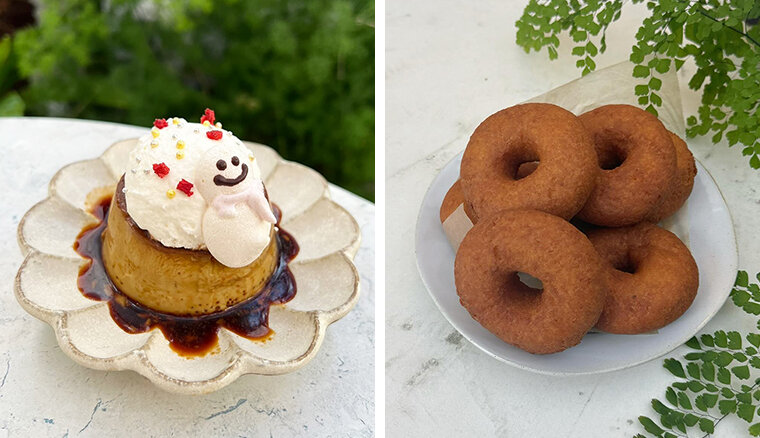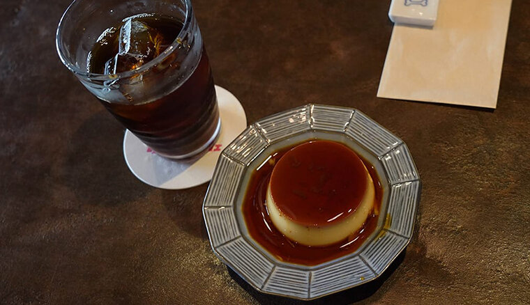 カフェでは日替わりでデザートがあり、少し硬めのしっかりプリンを味わうことができます。