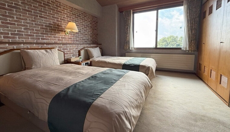 和室ツインと二間続きのスーペリアAルームがあり、どちらも畳敷きの床にベッドを配した和モダンな造りで、畳の香りに癒されます。
