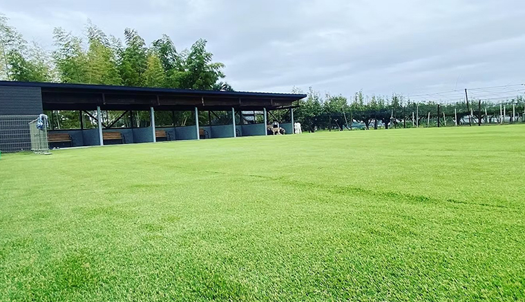 ドッグランは小型犬と中型・大型犬エリアに分かれているので、同じ大きさのお友達ワンコと遊ぶことができます。ワンコたちが思いっきり走り回れるように広く、芝生が綺麗に整備されているので愛犬も大喜び間違いなしなドッグランです。