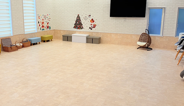 WANDRY(ワンドリー)は土浦市で人気の会員制室内ドッグランです!90m2の広々室内ドッグランの床は、滑りづらいゴム製でできていてワンコの足にも優しく、飼い主様も靴を履き替えて入場する形なので、いつも清潔です。