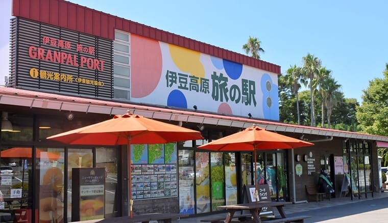ぐらんぱる公園に隣接する愛犬と楽しめるドライブ休憩スポットです。伊豆のおみやげ、雑貨、ペットグッズなどショッピングができるマーケットウィングと、和をイメージした癒しの食事処「伊豆よりみち総本舗」や炭火で焼く本格的な海鮮バーベキューが楽しめる「かき大将」、テイクアウトもあるフードウィングがあります。店内には入れませんがたくさんのテラス席があるので愛犬とグルメを楽しめます。
