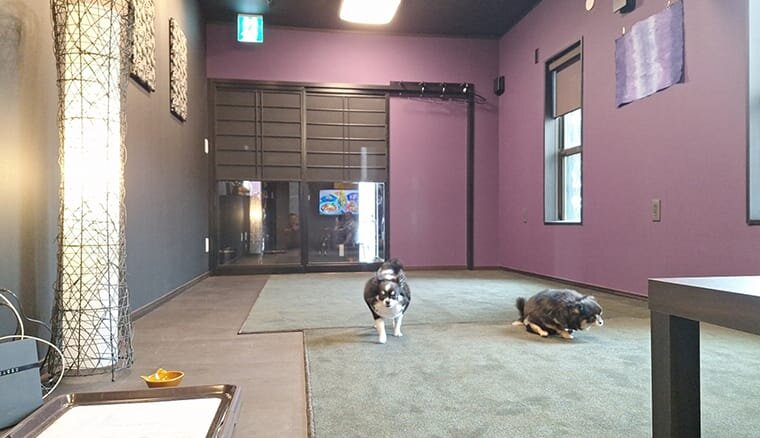 本館6階にある、ワンコと宿泊できるお部屋「ワンちゃんルーム」は、和の温もりを感じる畳のお部屋で、すぐ上のフロアは屋上で、アジリティ付きのドッグランが設置されています。