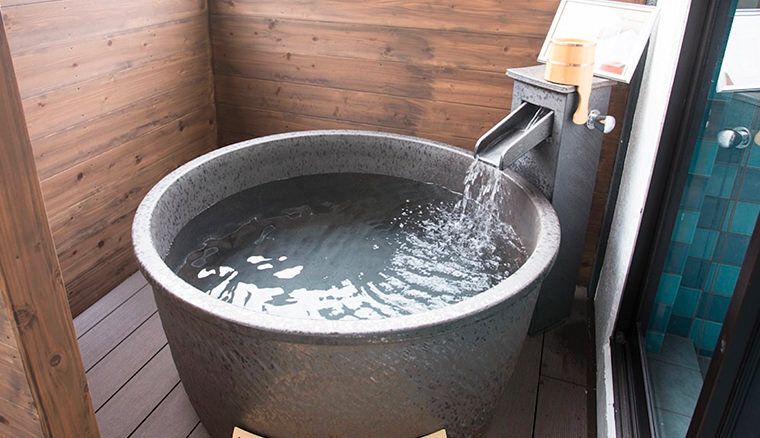 なお。お風呂は遠赤外線効果のある信楽焼でできています。坪庭の京都らしい景色を眺めながらリラックスしましょう。