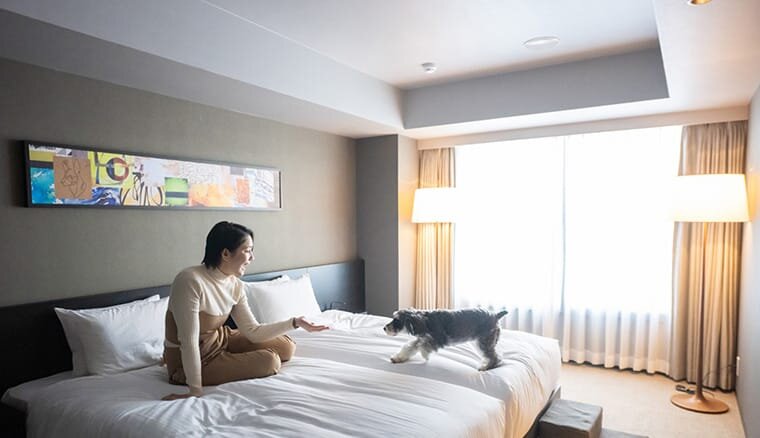 客室はシンプルでモダンな雰囲気の清潔なお部屋です。朝食プランではお部屋で愛犬と一緒にご飯を食べることができ、愛犬用のヘルシーなお食事もオーダー可能ですので、愛犬と片時も離れずにいられます。