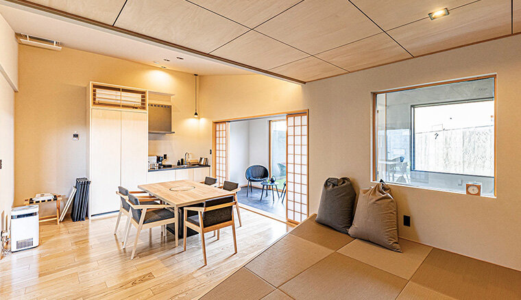 36平米の広い空間の半分が土間になっており、ワンコを自由に遊ばせてあげることもできますし、施設内には、