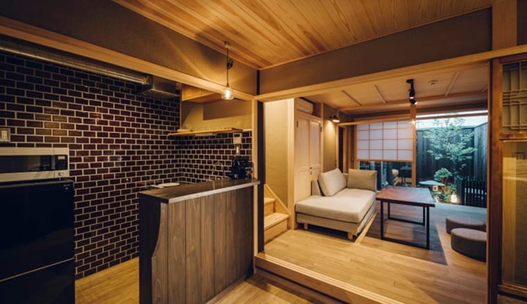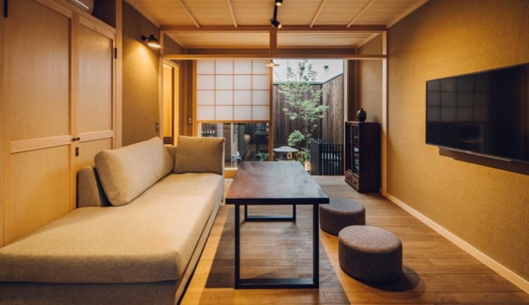 長屋の一角をリノベーションした、一棟貸切の京町家「京囲炉裏宿 染 SEN 七条平安」。観光地ではなく、京都の静かな住宅地のなかに位置しています。歴史を感じる伝統家屋と現代の便利さが融合した、快適に過ごせる宿です。