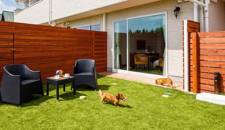 - 棟ごとにプライベートガーデンが広がり、ドッグラン代わりに利用できます。