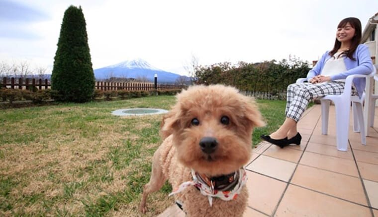 ワンコ用の食事メニューがあるのもポイント!3種類から選べる安心の手作り無添加ごはんは当日予約OKで、前日までの予約ならシフォンケーキも頼めます。また共用ドッグランは屋外・屋内の2種類が用意され、天候に関係なくワンコと遊べます。富士山が見える公園でのお散歩もオススメですよ。
