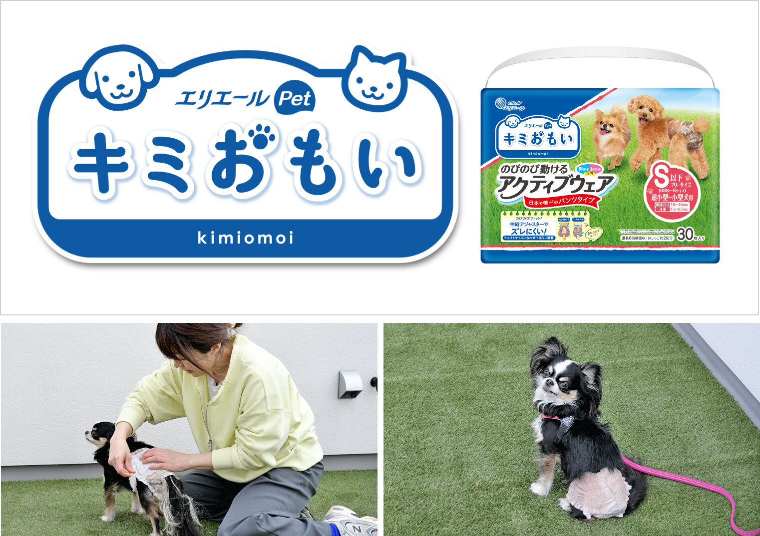 エリエールPet キミおもい『アクティブウェア』は、動きやすさと快適性を兼ね備えた愛犬用おむつ。やわらかな素材でフィットし、元気に走ってもズレにくい設計。吸収力もしっかりありながら、ごわつきにくく、長時間のお出かけも快適にサポートしてくれます。