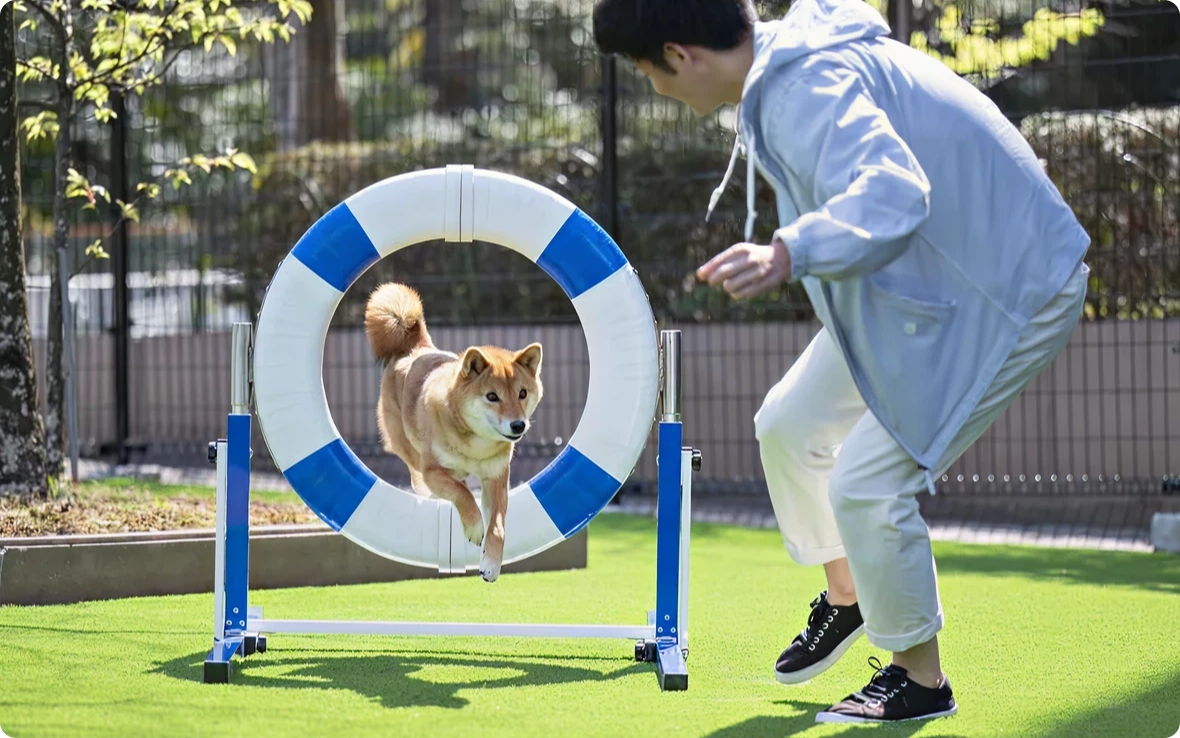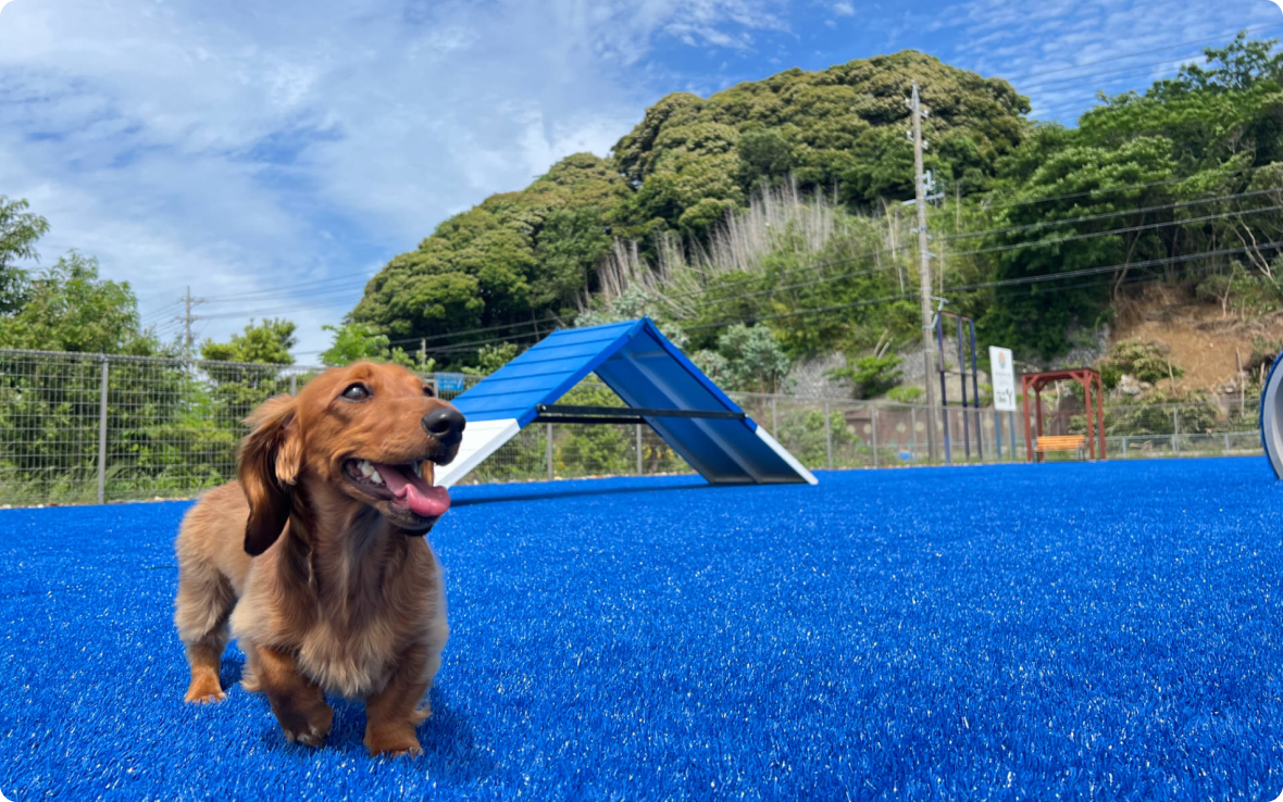 - 人工芝ドッグラン、アジリティドッグラン、室内ドッグランで遊べます。