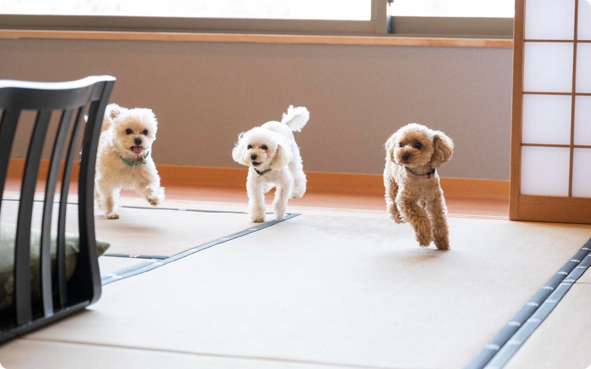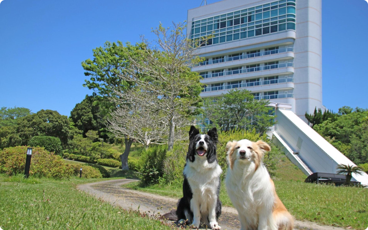 ホテルやコテージなど多彩なタイプから目的やお好みに合わせて選べます。大型のワンコでも、のびのび使えるゆとりある広さを備えたお部屋も。愛犬同伴可能なレストランでは、伊豆相模湾の旬の素材を使った美味しい会席料理がいただけます。相模湾を眺めることができるドッグランのほか、一部ドッグランにはアジリティ設備も完備。屋内にも広々としたプレイスペースがあるので、雨の日や暑い日でも愛犬を遊ばせることができます。