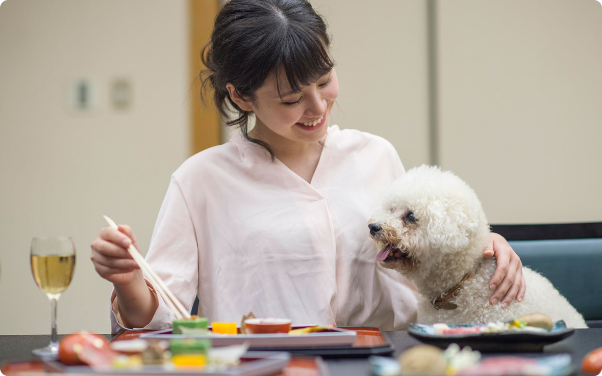 ※ホテル館内およびレストランは愛犬同伴不可となりますので、ご注意ください。ワンコの笑顔ポイント