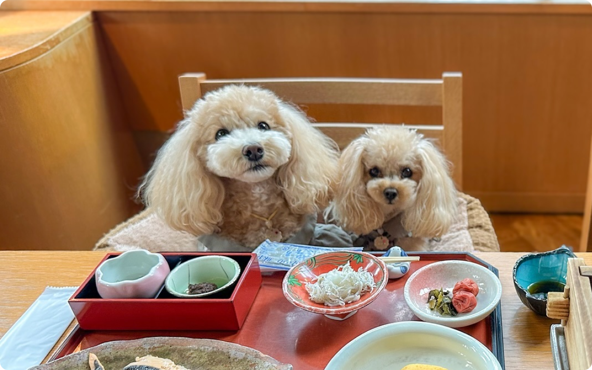 - まぐろとシラスのお茶漬けやシラスたっぷり丼など愛犬用メニューも豊富!