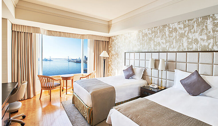 客室からレインボーブリッジまたは隅田川の景色を目の前に臨めるホテルインターコンチネンタル東京ベイ。ワンコは8階フロアのお部屋に泊まることができます。