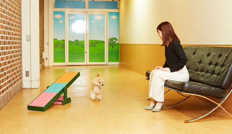 室内ドッグランが完備されており、雨でも猛暑の日でも天気を気にすることなく遊べることができます。ドッグランにはアジリティのほか、飼い主さんが座って見守れるソファも設置されていますよ。
