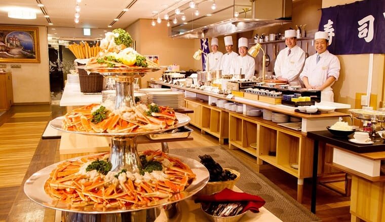 夕食はホテル最上階のレストランにて、地元食材や豊洲直送の魚介類を使用した創作和食を堪能。朝食は庭園を眺めながら新鮮野菜が中心の洋食を楽しめます。