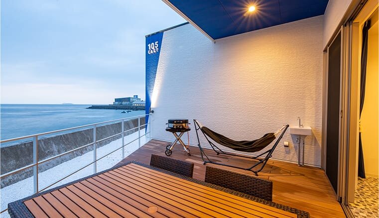 千葉県富津市にある「BAYSIDE KANAYA(ベイサイド金谷)」は東京湾を一望できるコテージです。