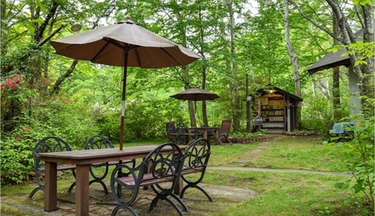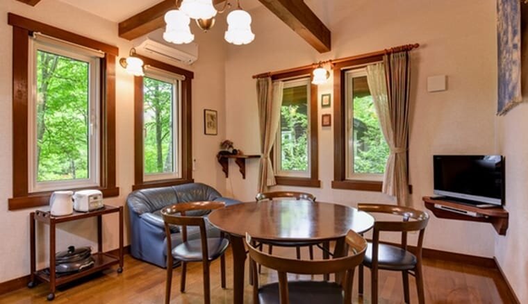 牧場通りにある、モロアの森に佇むヨーロッパ調のリゾートハウス“ランボォ”は、大型犬とも一緒に泊まれる森の隠れ家コテージ。