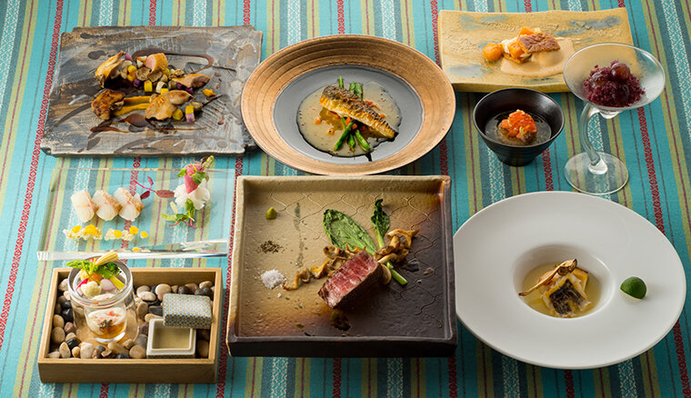- お部屋のダイニングで専属シェフと専用バトラーがフレンチ料理を提供してくれます。愛犬用にも豪華ディナーが!
