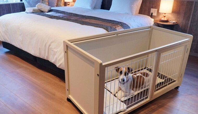 ヴィラは愛犬とも宿泊でき、大型犬もOK。充実したペットアメニティは魅力の1つです。さらに、庭には300坪もの天然芝ドッグランもあり、好きなだけ遊ばせられるのも嬉しいポイントです。