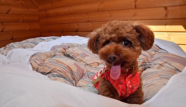 グランピング施設ということもあり、宿泊はドームハウスとログハウスの2タイプがあるのですが、双方でワンコと泊まることができます。特に、ログハウスであれば、室内でワンコをフリーにすることも可能です。
